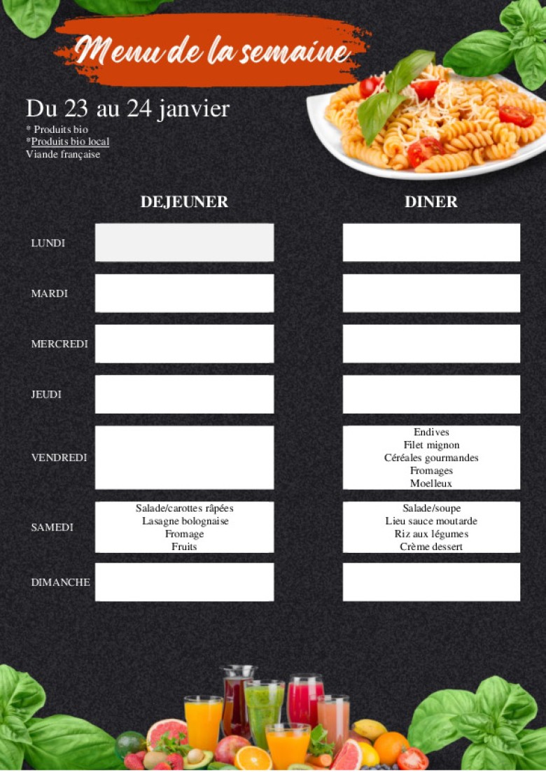 Le menu de la semaine